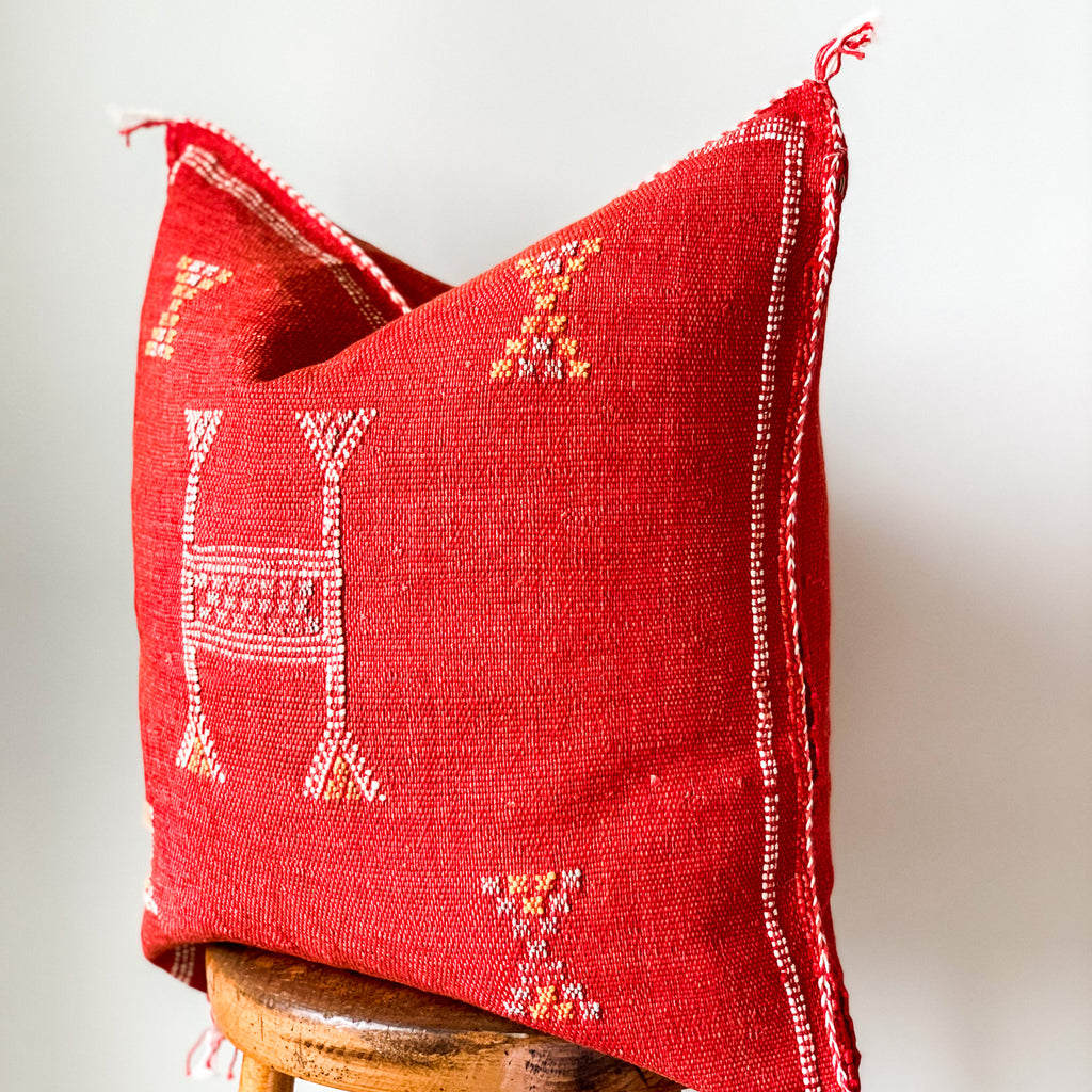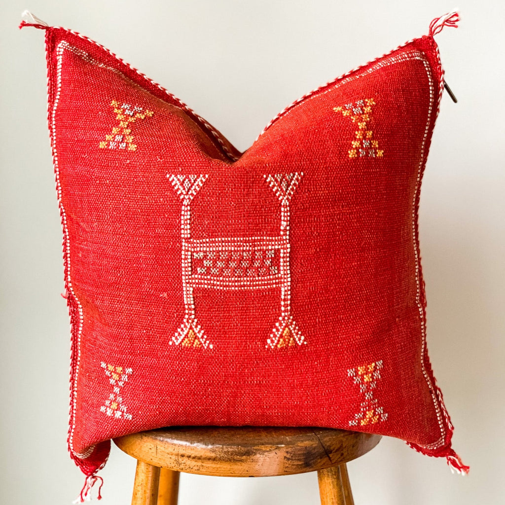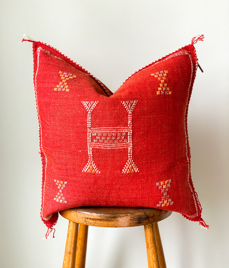 Our cactus silk pillows are hand loomed and embroidered in Marrakesh, Morocco. Each pillow is unique as they are hand dyed and sewn. As these are handmade extra care should be taken when using pillows. Imperfections are apart of being handmade and make these pillows truly unique.